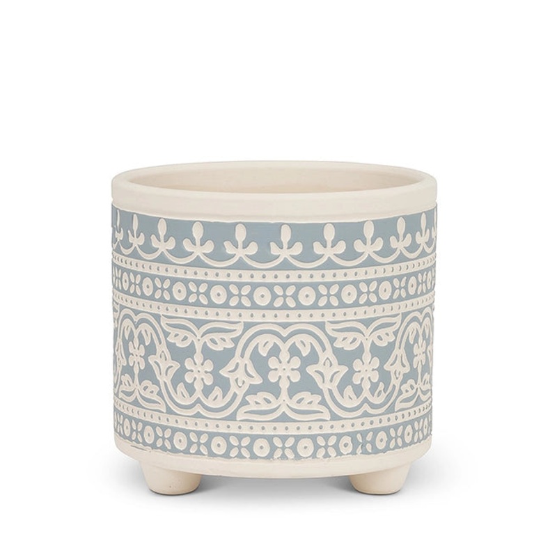 Small Blue Stencil Planter – 4.5H