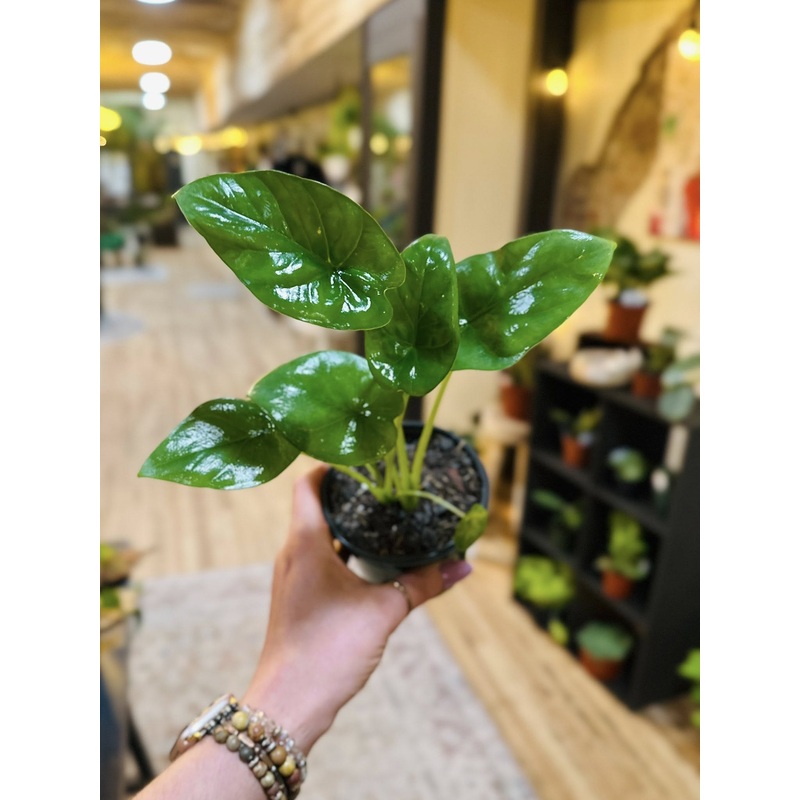 This compact Alocasia features glossy, bullate leaves with deep veining and a shimmering green surface, making it a standout addition to any indoor plant collection. Thriving in bright, indirect light and high humidity, Alocasia ‘Lukiwan’ is well-suited for terrariums or humid indoor environments