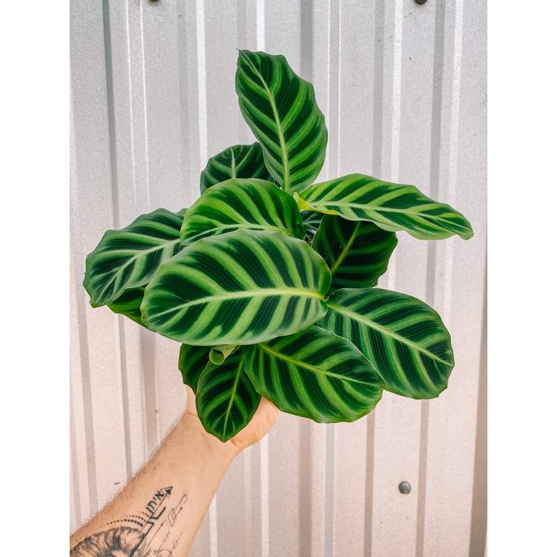 A tropical beauty with striking leaf patterns and a love for humidity. Calatheas move their leaves in response to light, making them feel alive and interactive.