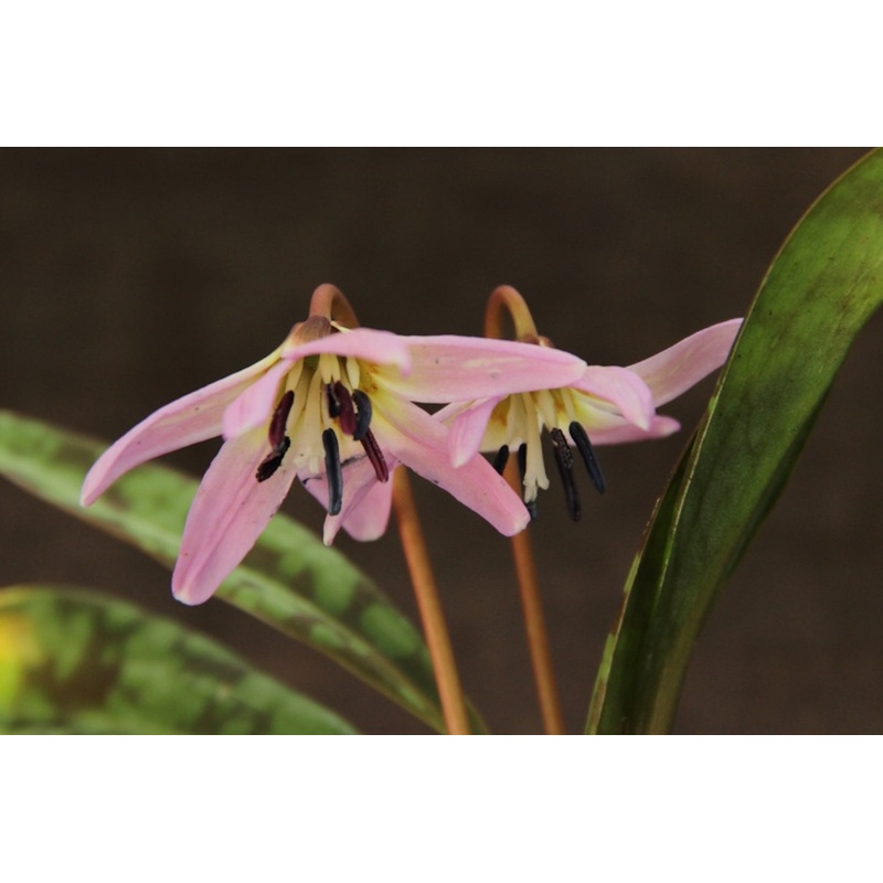 Erythronium (er-ith-ro-ne-um) is a genus of about 20 species that are member of the lily family (Liliaceae). They have quite a few common names such as fawn lily, trout lily, dog’s-tooth violet and adder’s tongue. The Latin name comes from the Greek word for red, erythros.Erythronium bulbs have had various uses over time- some species are edible and apparently tasty, however other species are slightly toxic and have been used as a contraceptive and emetic. However we use them in the garden!