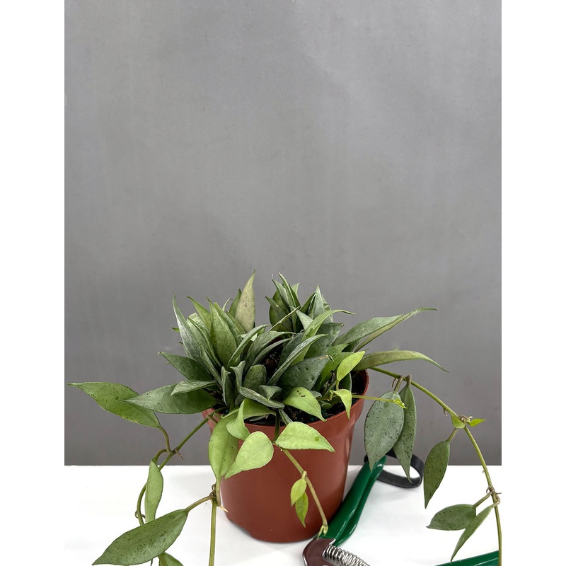 Discover the unique allure of the Hoya Lacunosa Mint, a delightful small-leaf Hoya that captivates with its soft silver foliage punctuated by dark green speckles. Its subtle, minty tones and delicate leaf pattern make it a perfect, eye-catching addition to any indoor collection.