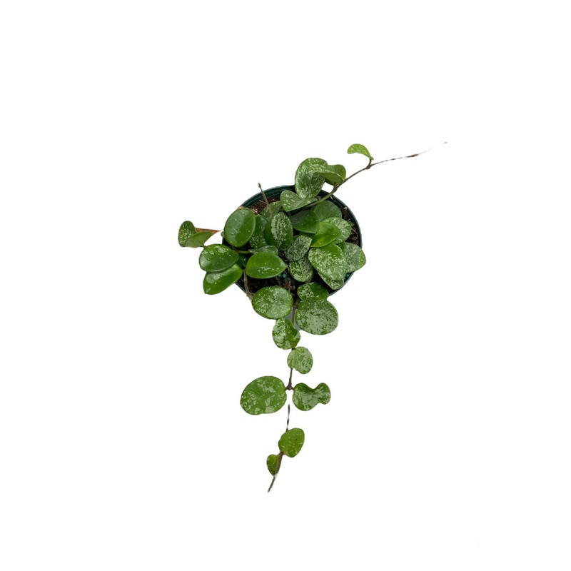 Hoya 'Mathilde' Add delicate charm and trailing elegance to your space with Hoya 'Mathilde', a captivating vining plant known for its petite, round leaves dusted with soft silver speckles. A hybrid between Hoya carnosa and Hoya serpens, 'Mathilde' strikes