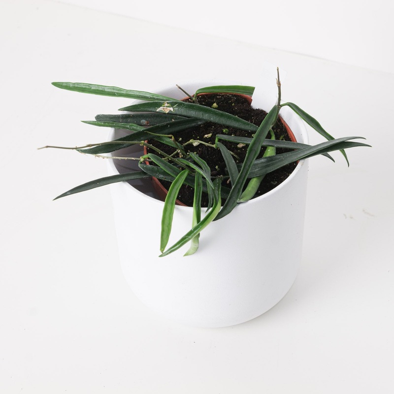 Hoya shepherdii, often referred to as the ‘String Bean Hoya’ due to its distinctive foliage, is an epiphytic vine belonging to the Apocynaceae family. It features long, narrow, succulent-like leaves that cascade gracefully, making it suitable for hanging baskets or trained on supports. When mature, it produces clusters of star-shaped flowers that are white or light pink with red centres, emitting a sweet, perfume-like fragrance.