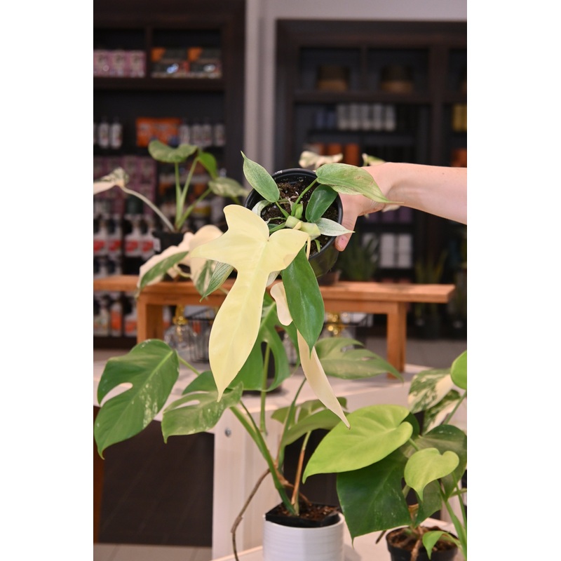Philodendron plants are easy-going and generally forgiving with their care routine. They thrive in bright, filtered light conditions but can tolerate medium light as well. Variegated Philodendron plants crave a higher light source to help keep their variegation. Water your Philodendron when the soil is dry about 2 down from the top of the pot. Keep your Philodendron in chunky potting mix.