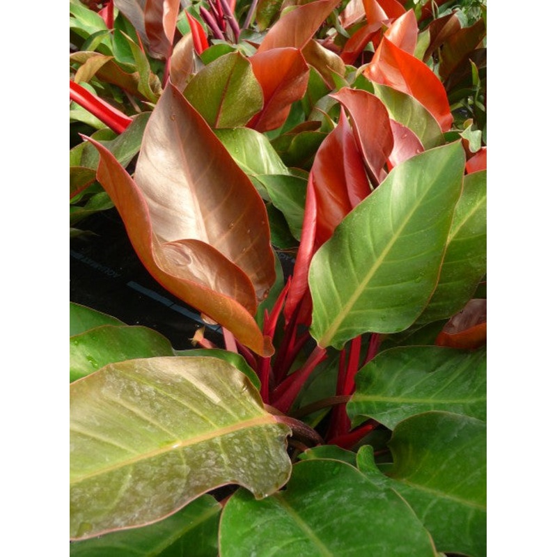 A beautiful philodendron with all the bright and colorful foliage. New foliage has hues that range from orange to red. As the plant ages, the leaves become more burgundy and dark green in color. Unlike many philodendron plants, this one is smaller in compa