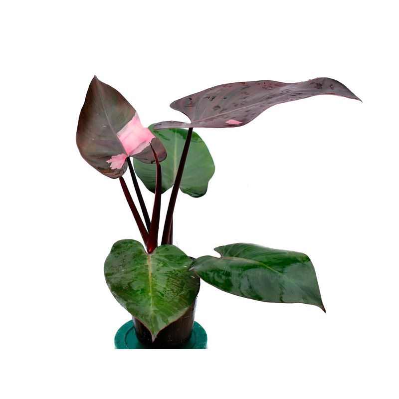 Foliage Characteristics: Features heart-shaped leaves with spectacular bubblegum pink variegation contrasting against deep green base color. The striking burgundy to dark red stems and petioles enhance the dramatic color palette, creating an exceptional specimen that’s truly unique in the plant world.