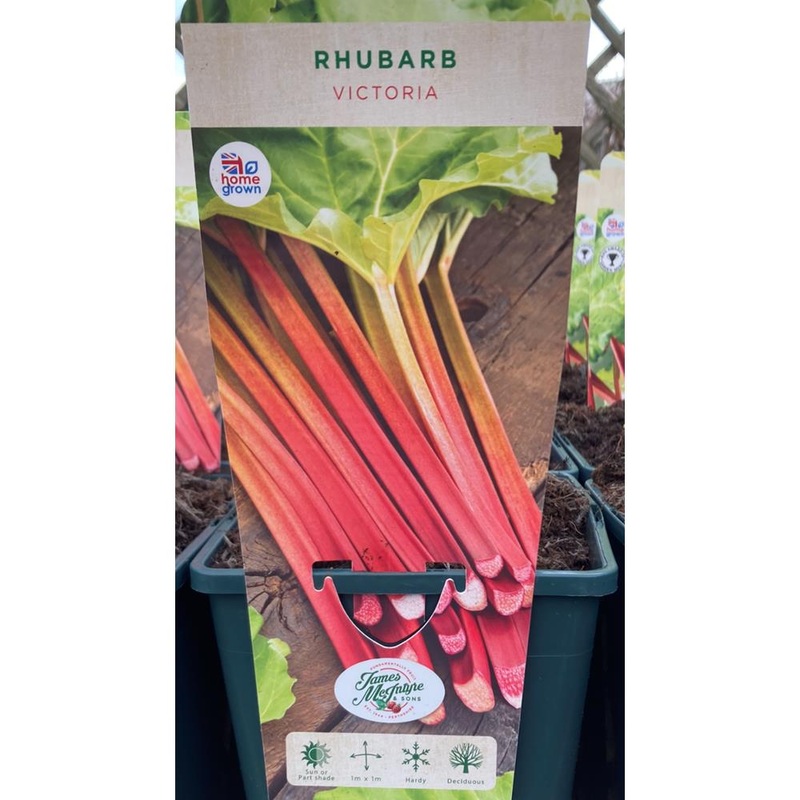 Rhubarb - Victoria | Rheum rhabarbarum. A reliable and popular variety that was named after Queen Victoria. Crops from Spring to Summer and produces long stalks of excellent quality that have a lovely sweet flavour and good texture - and don't tend to be '