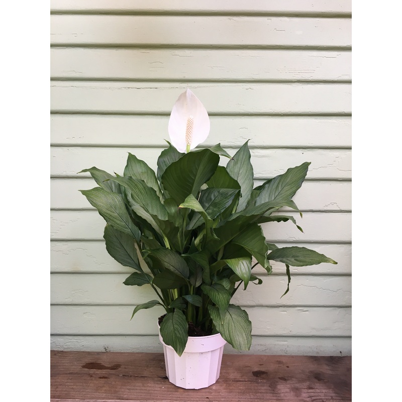 Spathiphyllum - Peace LilyPlatinum Mist NOTE: We do not ship plants. You can only purchase for a "pick-up" order. Sizes: 6" Pot at 1.5+ft Tall *measurements are approximate and are taken from the ground up (including the planter) Growing Tips - info coming